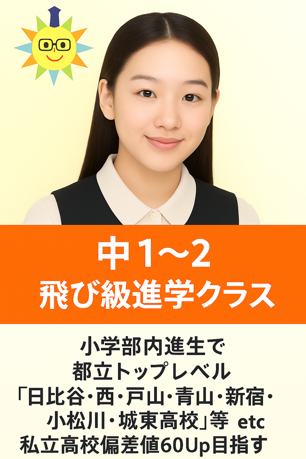 ●地元公立中進学時の目標は日比谷高校、戸山高校、青山高校、西高校小山台高校、新宿高校、小松川高校等々を目指します。